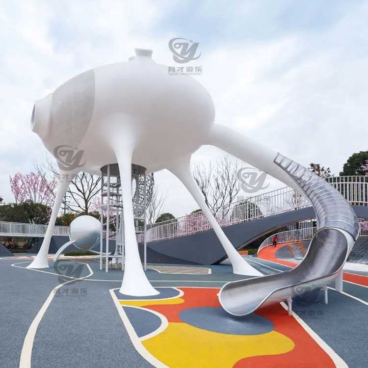 景區(qū)不銹鋼滑梯在造型設計上更加豐富多變,有全筒滑梯、半筒滑梯、直滑梯、螺旋S滑梯、交叉麻花狀盤旋,也可以根據(jù)商場的布局形式定制滑梯造型樣式。
