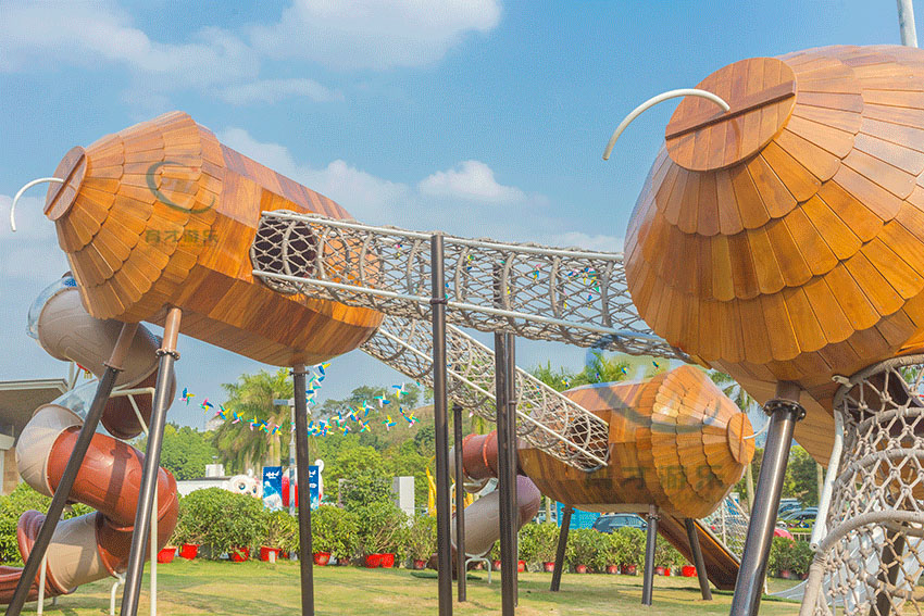 材質(zhì):防腐木+工程塑料滑道+航海繩子