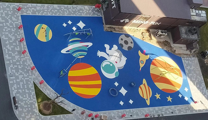 1.彩色面層圖案可靈活設(shè)置,自由搭配,各類圖案無接縫,一次成型, 整體感強(qiáng)。