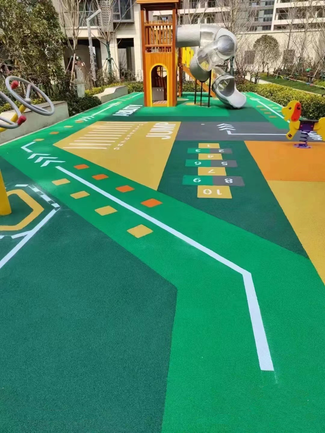 小區(qū)塑膠跑道施工_幼兒園室外塑膠地墊廠家_公園彩色塑膠跑道