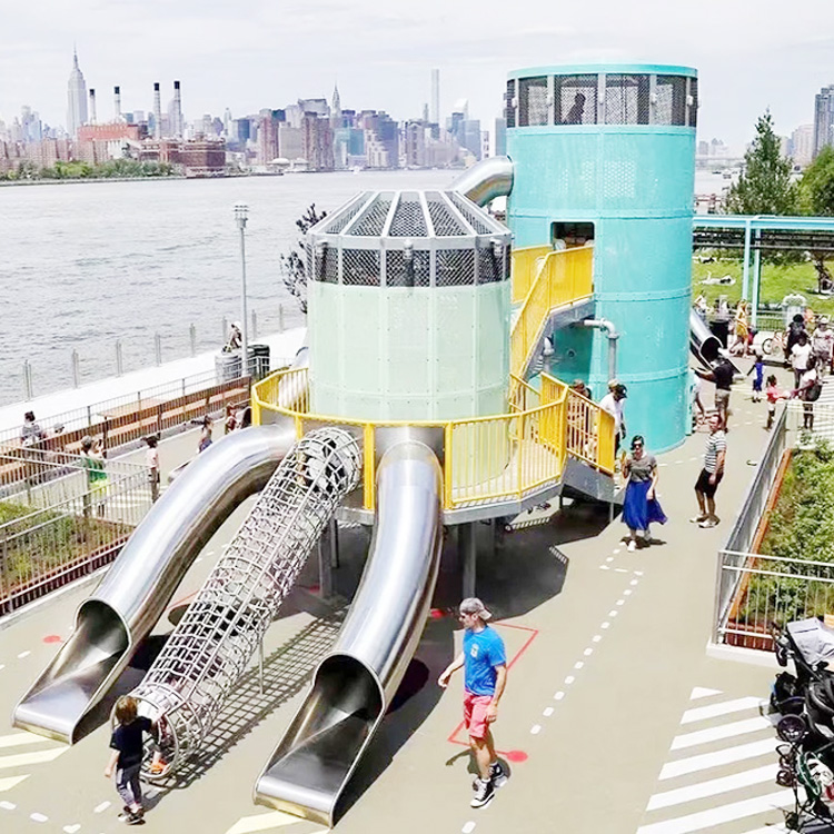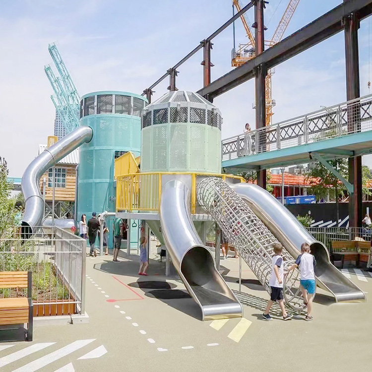 公園以立體空間打造多維度體驗(yàn)感設(shè)置了不銹鋼滑梯、旋轉(zhuǎn)樓梯、木樁爬網(wǎng)等游樂(lè)設(shè)施小朋友可以沉浸體驗(yàn)鉆爬、穿行、平衡等多形式戶外活動(dòng)