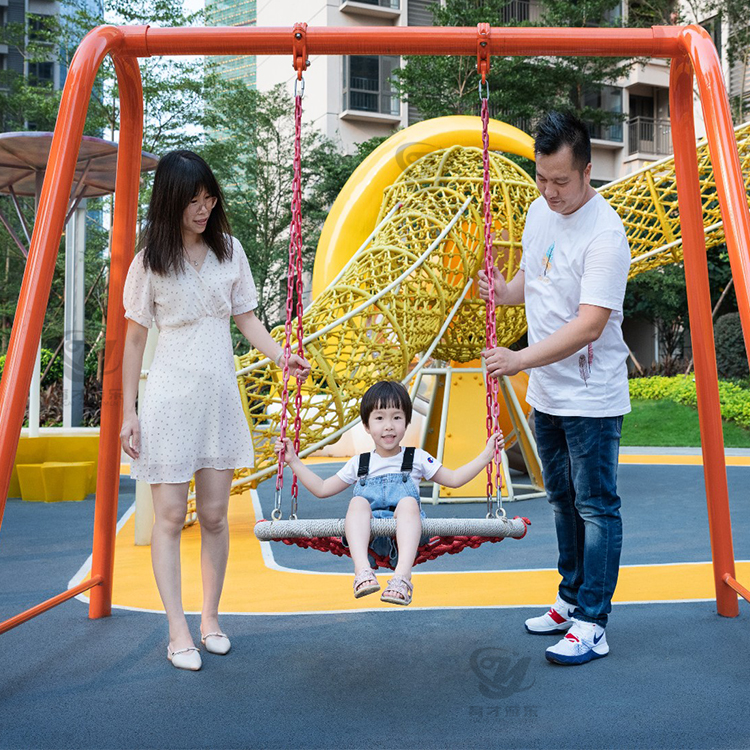 4. 接觸面的材料處理:各接合處和轉(zhuǎn)角處經(jīng)過圓角處理,五金零件為圓處理,預(yù)防任意調(diào)整功能,確保兒童攀爬設(shè)施結(jié)構(gòu)的牢固和安全,增加了秋千,讓親子關(guān)系更加和諧。