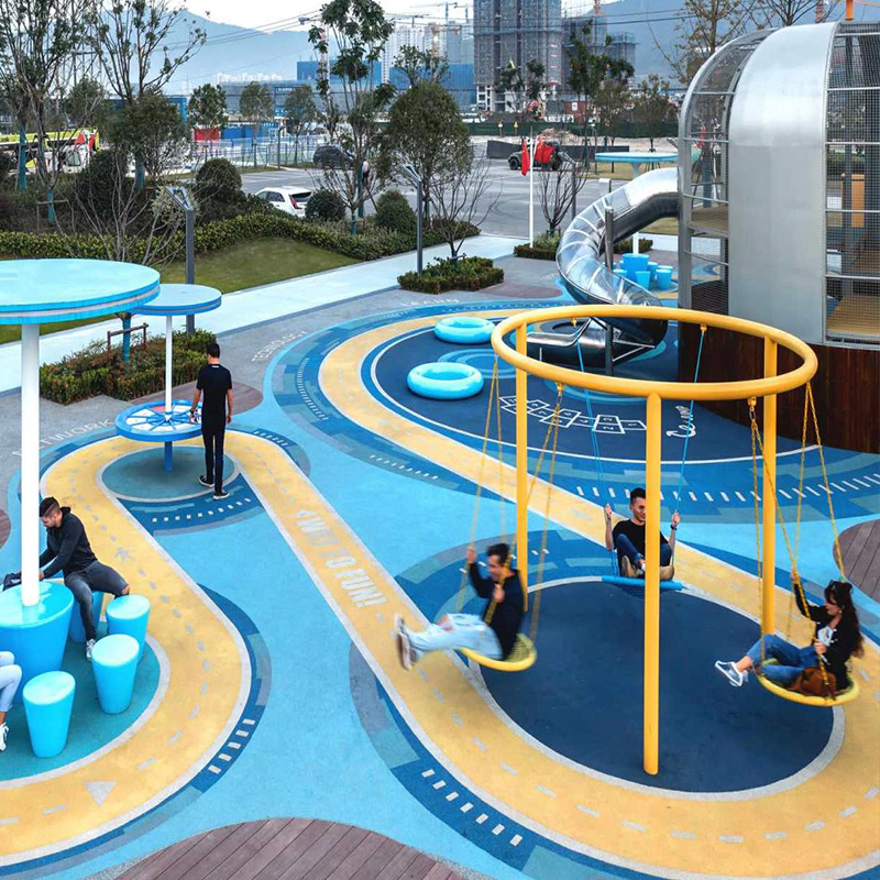 秋千、搖搖樂、蹺蹺板也是幼兒園必選的游樂設(shè)施,可玩性和互動性高,傳音筒、打擊樂器角色小屋等,造型趣味,顏色亮麗,可激發(fā)兒童潛在興趣,帶來不一樣的感官體驗。