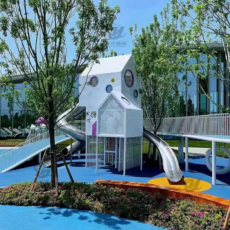 不銹鋼滑梯的應(yīng)用場(chǎng)景多是戶外,但其實(shí)不銹鋼的滑梯根據(jù)其造型的便利性,它的使用場(chǎng)景比之塑膠類滑梯更加隨意,專業(yè)的戶外游樂園、社區(qū)商場(chǎng)配套等等環(huán)境都可以應(yīng)用,造型可根據(jù)具體場(chǎng)景來(lái)設(shè)計(jì),比如管道類、滑道類;弧形滑梯、螺旋滑梯、直滑梯等等都可量身定制。